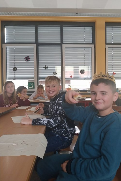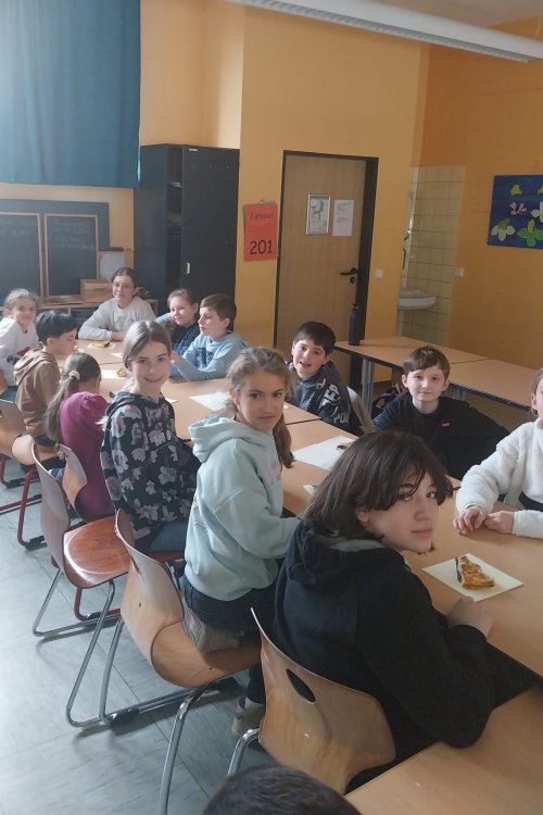 Im Rahmen des Unterrichtsthemas „la galette des rois“ lernten die Schülerinnen und Schüler einen traditionellen französischen Brauch kennen, der in Frankreich am Dreikönigstag gefeiert wird.
