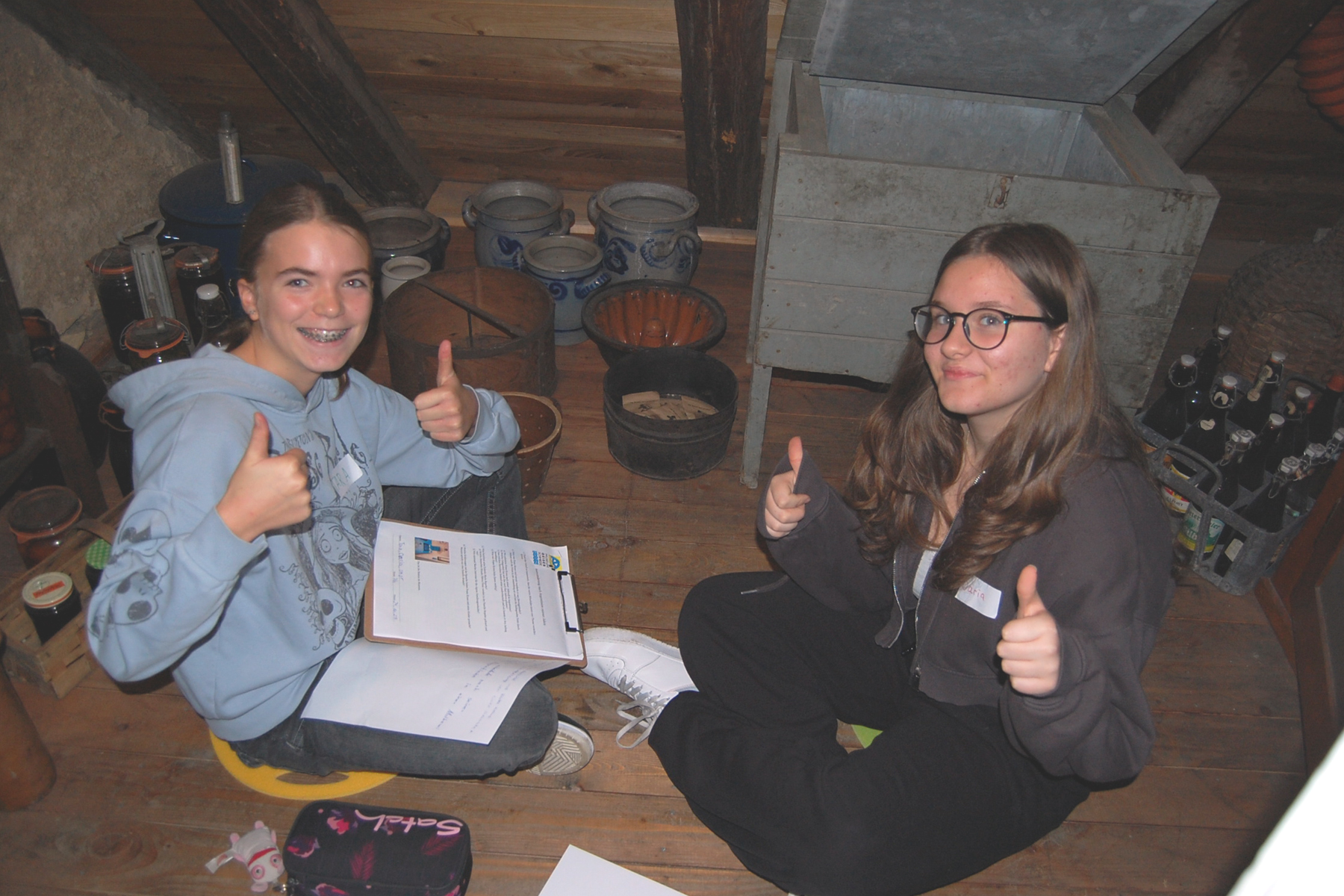 Am Ende des Vormittags stellten die Klassen ihre Ergebnisse vor, berichteten auch von ihrer eigenen Migration bzw. von ihren Vorfahren, die nach Bühlertal kamen, und danach durften sie gemeinsam einen Koffer für die bevorstehende – fiktive – Auswanderung packen. Was nimmt man mit? Was braucht man für einen Neuanfang? Wozu wurden die Gegenstände früher benötigt? All diese Fragen hatten sich natürlich viele Jugendliche noch nie zuvor gestellt, und dem ein oder anderen wurde vielleicht bewusst, was es bedeutet, alles, was vorher Heimat war, verlassen zu müssen.
