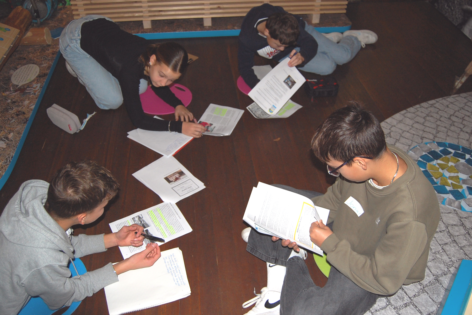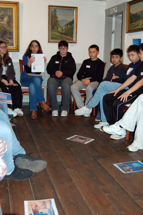 Nach der Begrüßung durch die Museumsleiterin Ina Stirm und ihrer Mitarbeiterin Isabelle Demont verschafften sich die Jugendlichen zuerst einmal während eines Rundgangs durch das Museum einen ersten Eindruck, da viele Schülerinnen und Schüler noch nicht wussten, was es hier alles zu erkunden gab. Danach erarbeiteten die Jungen und Mädchen an verschiedenen Stationen unterschiedliche Themen rund um die Ein- und Auswanderung von Bühlertal nach Amerika bzw. vom Ausland nach Bühlertal. Zeitzeugen berichteten anhand von Bildern, Texten und Videomaterial über ihre Anfänge in Bühlertal, von ihrer Arbeit, z.B. im Straßenbau, der Holzwirtschaft und in der AVOG (heute Fa. Bosch) und über ihre Beziehungen zu den Einheimischen.