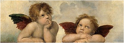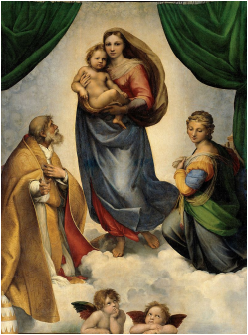 Die beiden Engel am unteren Bildrand – zwei wahre Popstars - sind berühmter als das Gemälde selbst. Man findet sie auf Regenschirmen, Taschen, Kissen, Tassen, Geschenkpapier, ...