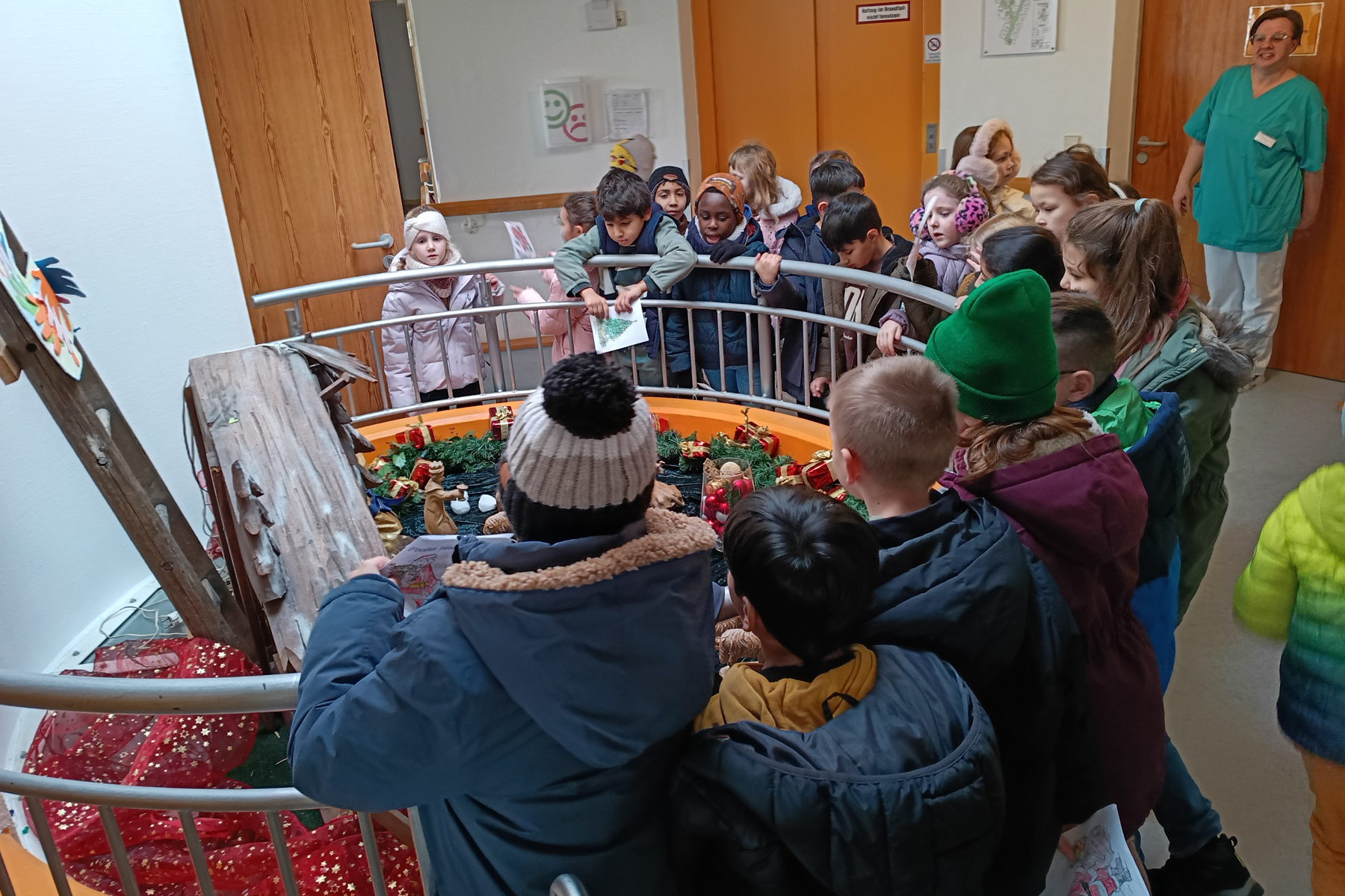 Unsere Erstklässlerinnen und Erstklässler zauberten am 18. Dezember 2025 eine besondere Freude ins Seniorenzentrum. Mit viel Liebe bemalten und gestalteten sie Weihnachtskarten und überreichten sie persönlich beim kurzen Vormittagsbesuch. Gemeinsam trugen sie das bekannte Lied „Schneeflöckchen, Weißröckchen“ vor, wobei auch einige Bewohnerinnen und Bewohner begeistert mitsangen. Die Begegnung war geprägt von Wärme und Wertschätzung.