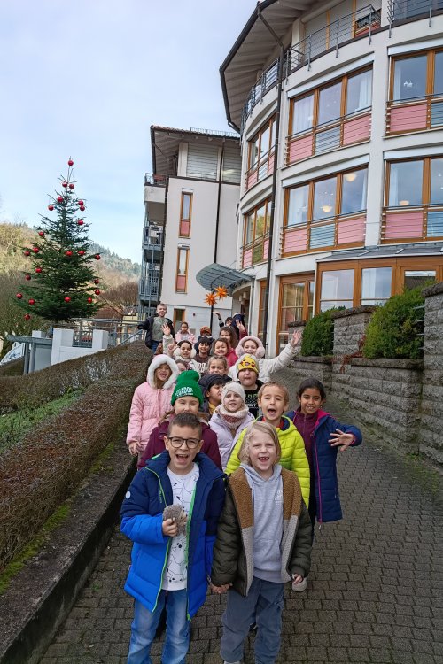 Für diese herzerwärmende Geste zum Jahresende erhielt die Klasse von der Heimleitung kleine Gummibärchen-Packungen, festliche Klassenzimmerdeko und eine liebevolle Weihnachtskarte. Klassenlehrerin Frau Groh zeigte sich stolz: Die Kinder bewegten sich ruhig und respektvoll im Seniorenzentrum, außerdem sangen sie klar und textsicher. Die Klasse verabschiedete sich gemeinsam im Chor mit dem Wunsch „Frohe Weihnachten“.