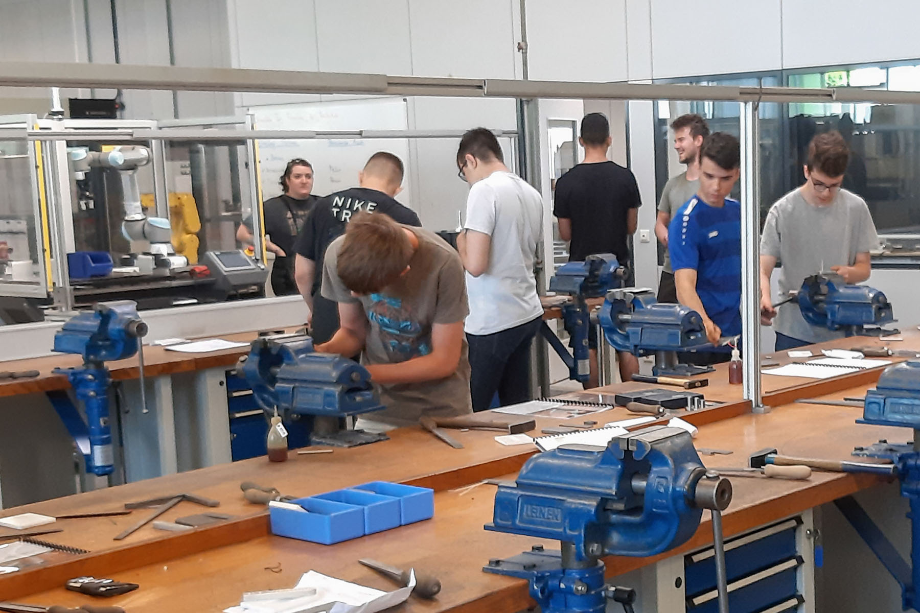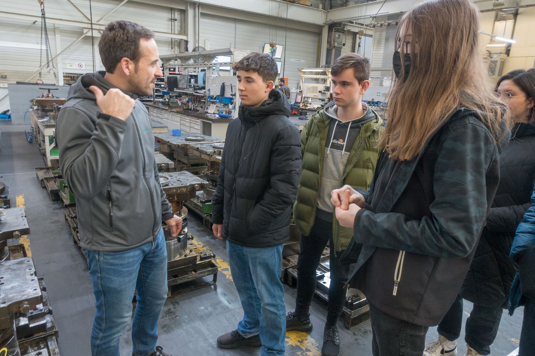 In Kooperation mit der Ausbildungswerkstatt der Firma Schaeffler fand zwischen Mai und Dezember das Locher-Projekt statt. Die Schüler*innen stellten dabei ein Werkstück her, was uns an der FHR nicht möglich gewesen wäre – einen aus vielen Teilen, mit vielen Bohrungen und Gewinden bestehenden Locher. Zu Beginn kamen Vassilios Togoulidis, Ausbildungsleiter im Werk Bühl, zusammen mit vier Azubis aus verschiedenen Berufen zu uns an die Schule, um dort bei der Herstellung der Einzelteile zu helfen. Kurz vor den Sommerferien durften alle Techniker*innen einen ganzen Tag in die Lehrwerkstatt, um an großen Maschinen und unter Betreuung von acht Azubis die Locher zusammenzubauen. Am 13. Dezember fand nun die Abschluss-Veranstaltung in den Produktionshallen statt. Alle Schüler*innen konnten sich anschauen, in welch modernem Umfeld sich die zehn Ausbildungsberufe präsentieren, die es bei Schaeffler gibt. Für viele Kinder waren das neuartige Eindrücke und Erfahrungen, für einen gibt es schon einen Ausbildungsvertrag, und zwei wollen mindestens noch ein Praktikum machen. Und so findet auch Schaeffler neue Talente auf der Suche nach Fachkräften – eine Win-win-Situation!