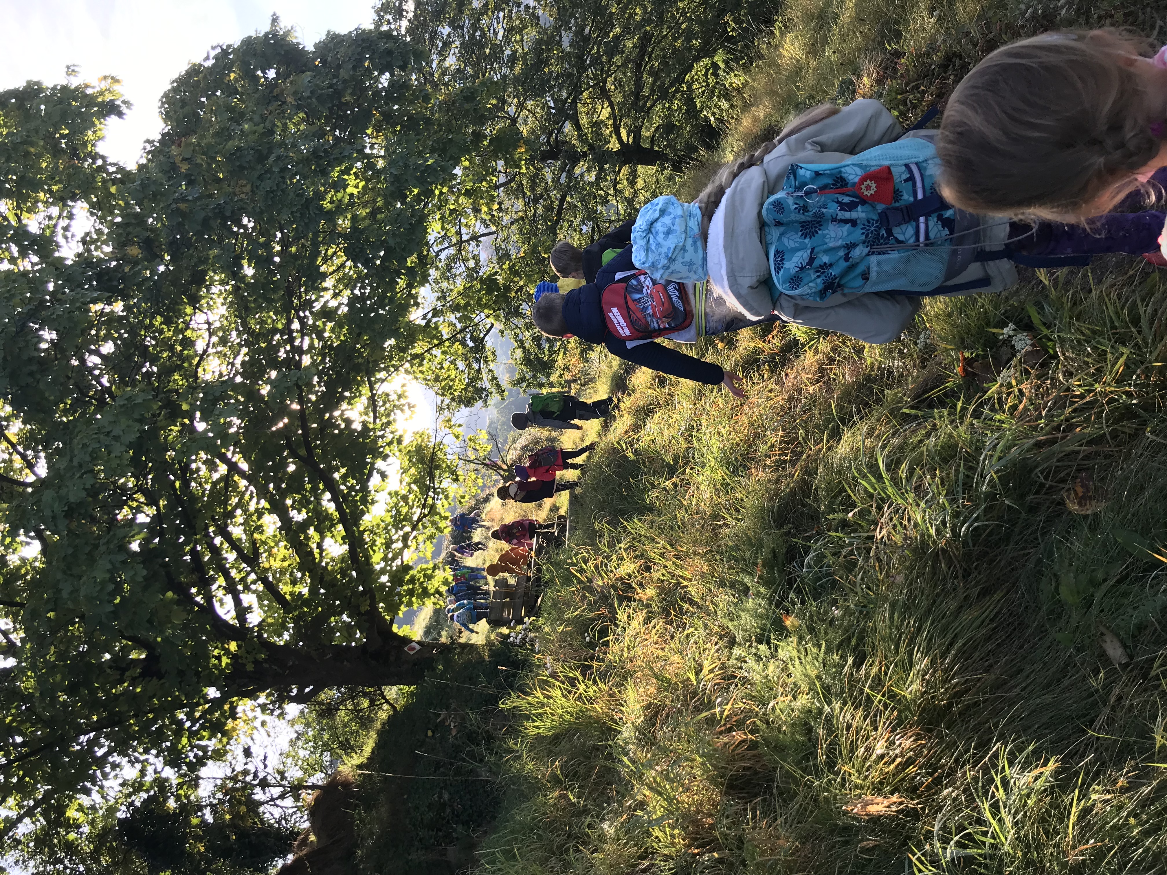 Bei herrlichem Herbstwetter brachen am frühen Freitagmorgen "Die wilden Waldhelden", bestehend aus den Kindern der Klasse 1a und ihrem Klassenlehrer Nicolas Hoferer, an der Franziska-Höll-Grundschule zu einer Wanderung zum Naturpark-AugenBlick am Engelsberg auf. Begleitet wurden die Waldhelden von der zukünftigen Projektleiterin der Naturparkschule Sabrina Kunz, die tags zuvor in der Schule den Kindern den Naturpark anhand des Logos vorstellte und mit ihnen Guckrohre für die Wanderung gestaltete. Auf dem Weg zum Engelsberg kam es bei der Freiwilligen Feuerwehr Bühlertal noch zu einer spontanen Besichtigung des neuen Löschfahrzeuges und einer interessanten Einführung in die Arbeit der Feuerwehr durch Herrn Strohmaier. Anschließend konnten die Kinder und Erwachsene beim Aufstieg zum Naturpark-AugenBlick die vielfältige Tier- und Pflanzenwelt des Engelsbergs bestaunen. Aber auch das Naturpark-Auge, das Logo des Naturparks, hatte es den Kindern angetan. Die jungen Waldhelden zeigten sich stets erfreut, wenn sie es entdeckten. Am Naturpark-AugenBlick angekommen wurde der herrliche Ausblick auf Bühlertal und das Rheintal bei einer verdienten Vesperpause genossen. Nach der Stärkung kam der eigentliche Höhepunkt der Entdeckungstour. Mit dem selbstgestalteten Guckrohr durfte jeder "seinen" AugenBlick suchen und ihn danach mit Bunstiften auf Papier festhalten. Schließlich machte sich die Wandergruppe über die Hindenburgstraße und den Liehenbach auf den Weg zurück zur Schule, wo sie mit zahlreichen neuen Eindrücken und einigen Kastanien in den Hosentaschen gegen Mittag ankamen.