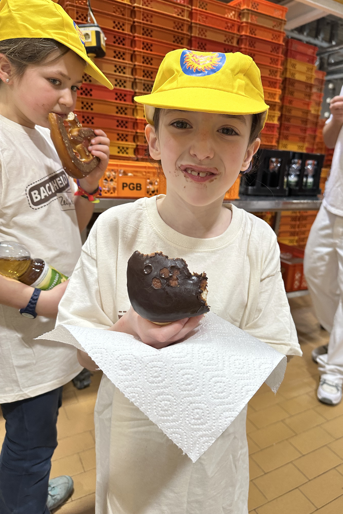 Die Kinder der Franziska-Höll-Schule wurden herzlich empfangen und anschließend eingekleidet, damit die Backstube auch hygienisch sauber bleibt.