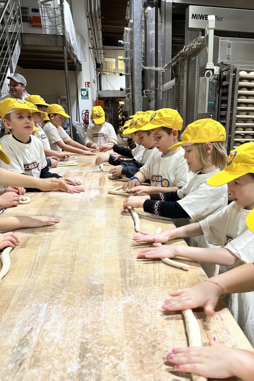 Bevor alles genau angeschaut wurde, gab es zuerst einen Kurs im Brezel „werfen“. Die Technik war für alle sehr interessant. Die Brezel wurden am Tisch gelegt und dann zum Gehen und Backen fortgebracht. Brezeln legen ist gar nicht so schwer!