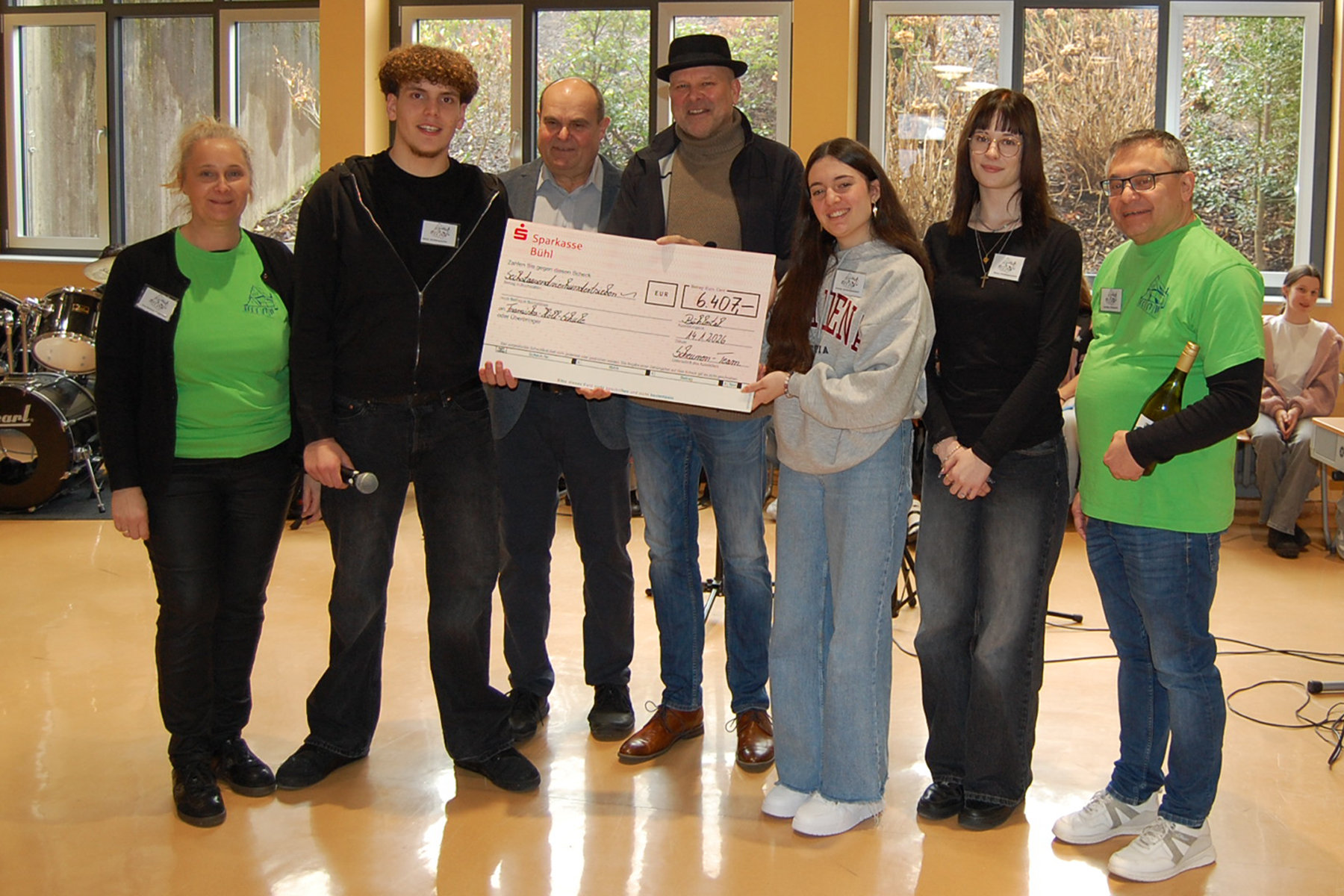 Große Freude herrschte in der Franziska-Höll-Schule, als Erich Bäuerle dem Schulleiter Paul Meer am Tag der offenen Tür der Realschule einen Spendenscheck in Höhe von 6407,-€ überreichte. Erich Bäuerle, der in der Zeit während des Sternenwegs seine Scheune öffnet, verkauft nicht nur heiße Getränke, sondern hat jedes Jahr neue Ideen, um die Sternenwegläufer aufs Neue zu begeistern. So veranstaltete er z.B. in dieser Saison einen Salsa-Abend und eine 80er-Party in seiner gemütlichen Scheune. Den Erlös spendet Erich jedes Jahr einem Bühlertäler Verein bzw. einer Bühlertäler Institution, und dieses Jahr erhielten die beiden Schulen unserer Gemeinde jeweils den gleichen Betrag. Wir freuen uns sehr darüber, können wir doch nun gemütliche Sitzgelegenheiten für die Aula anschaffen, passend zum vom Förderverein erst kürzlich finanzierten Büchertauschregal.