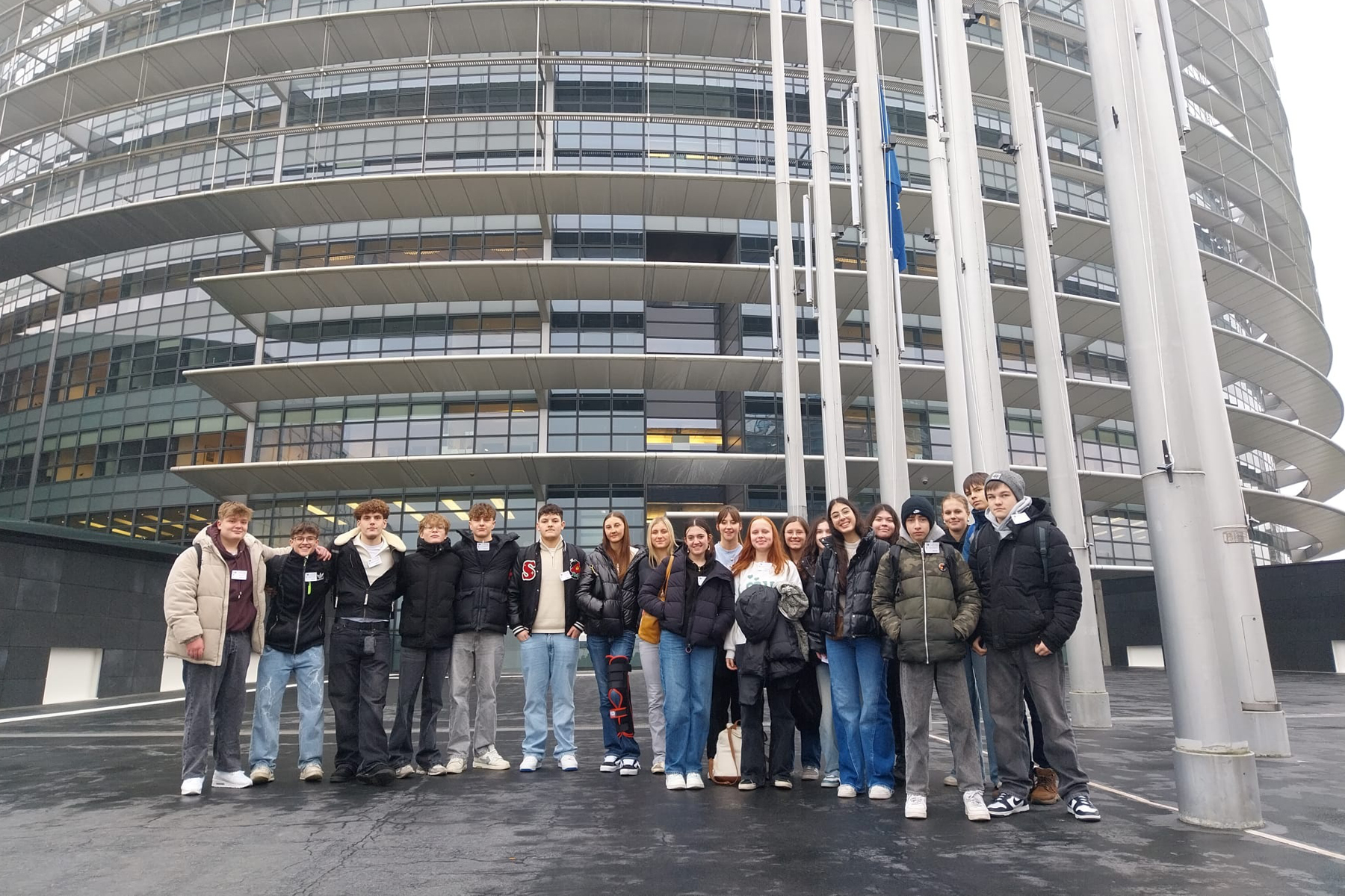 Am 21. Januar besuchte die Klasse 10 das Europäische Parlament in Straßburg, um europäische Politik dort zu erleben, wo sie gestaltet wird. Bereits auf dem Weg zum Parlament wurden die Schülerinnen und Schüler unmittelbar mit aktuellen politischen Auseinandersetzungen konfrontiert: Landwirte machten im Rahmen der Bauerproteste mit ihren Traktoren lautstark auf ihre Ablehnung des geplanten Mercosur-Abkommens mit südamerikanischen Staaten aufmerksam. Nach einer anschaulichen und informativen Einführung durften die Schülerinnen und Schüler eine Plenarsitzung besuchen und so die parlamentarische Arbeit der Europäischen Union hautnah miterleben. Der Ausflug hinterließ einen bleibenden Eindruck und machte deutlich, dass europäische Politik lebendig, bewegend und von großer Bedeutung für das tägliche Leben der Bürgerinnen und Bürger ist.
