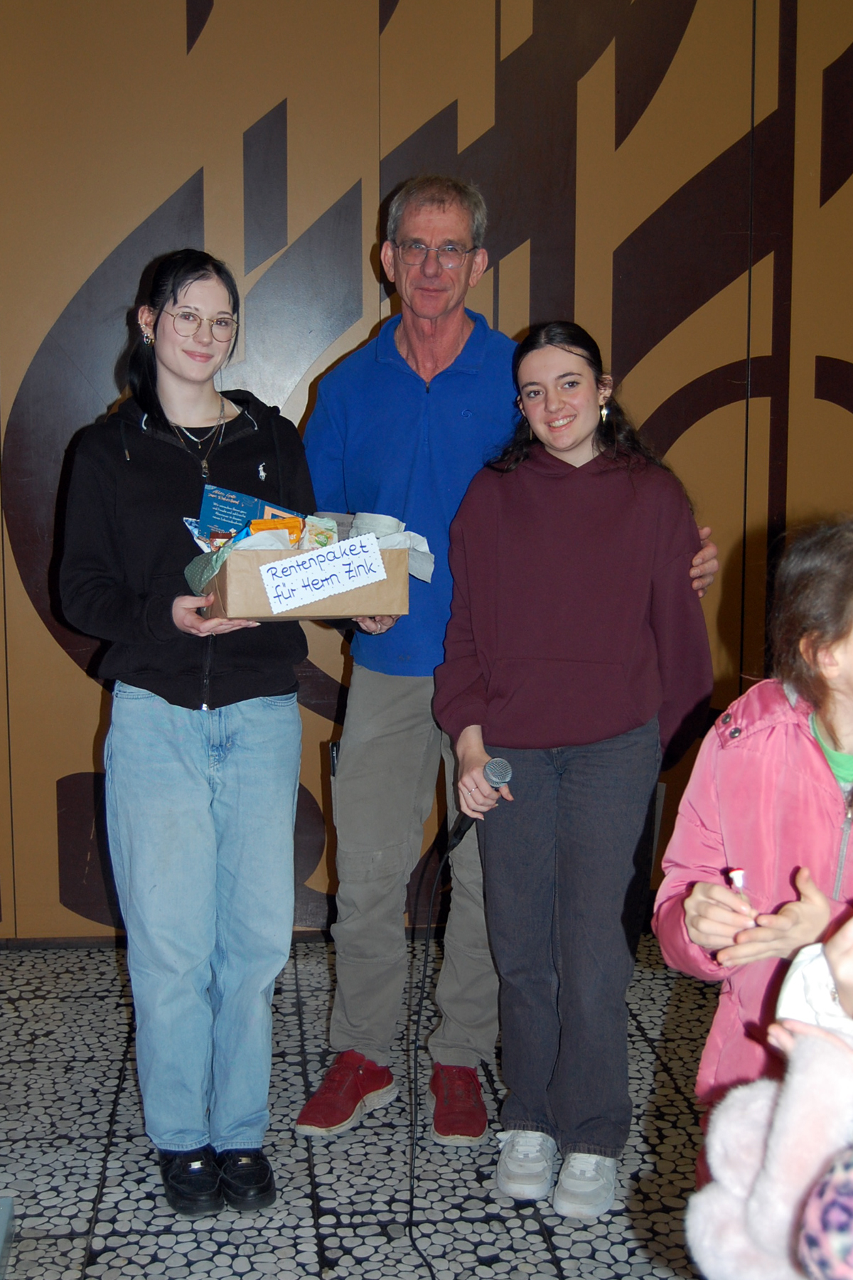 Und plötzlich war er da – der letzte Tag unseres Hausmeisters Andreas Zink an der Franziska-Höll-Schule! 20 Jahre lang war er jederzeit für die Schulgemeinschaft da und jetzt darf er endlich in den verdienten Ruhestand gehen. Seine Zuverlässigkeit und Hilfsbereitschaft wussten die Schulleitung, die Lehrkräfte und die Schülerinnen und Schüler stets zu schätzen. Während einer kleinen Verabschiedungsfeier in der Aula der Schule dankten Herr Meer und die beiden Schülersprecherinnen Antonia Blum und Sydney Dilzer unserem Hausmeister für seine stets vertrauensvolle Arbeit und in Vertretung für die gesamte Schülerschaft überreichten ihm die Schülersprecherinnen ein kleines „Rentenpaket“ für seinen Ruhestand. Ulla Meier von der Gemeindeverwaltung Bühlertal ließ es sich ebenfalls nicht nehmen und übergab unserem Hausmeister 20 goldene süße Kugeln – für jedes Dienstjahr eine, wie sie betonte. Auch ehemalige Kollegen kamen an diesem Vormittag in die Schule, um Andreas Zink in den Ruhestand zu verbschieden.