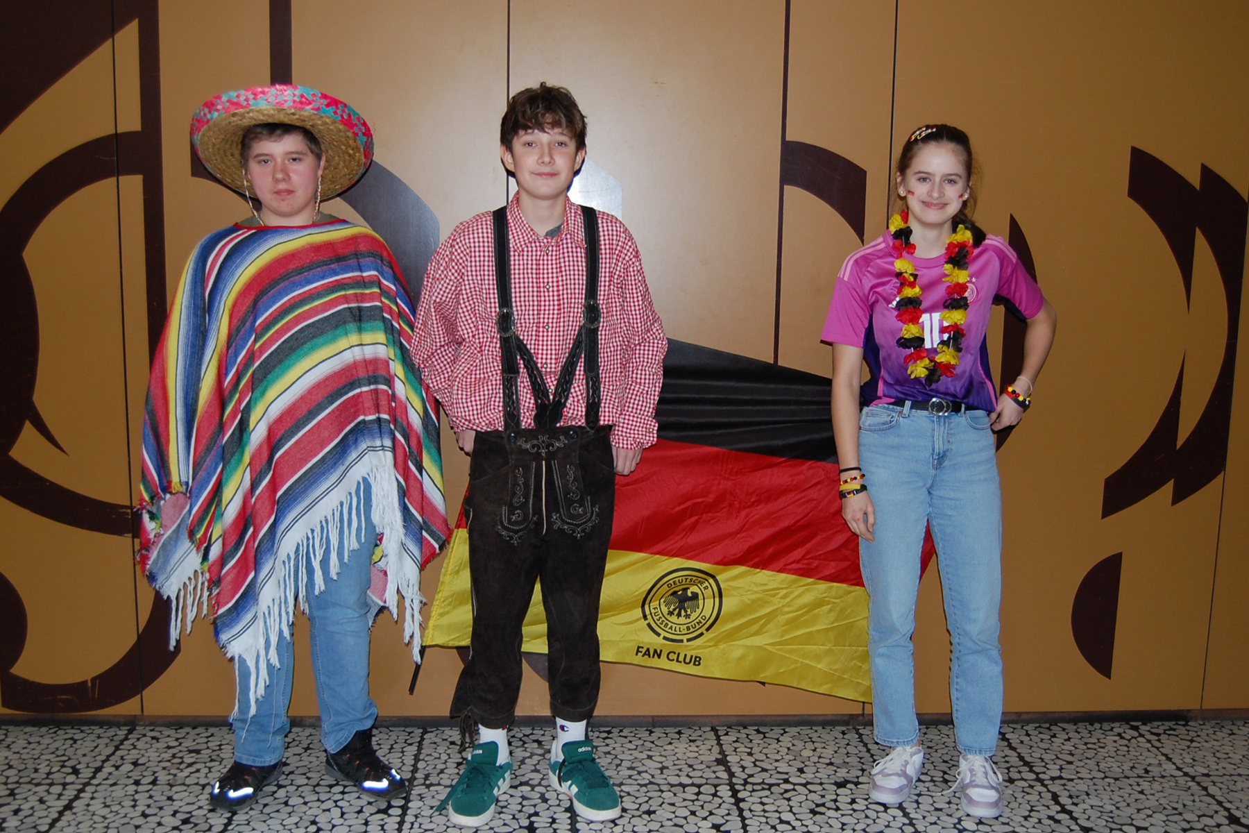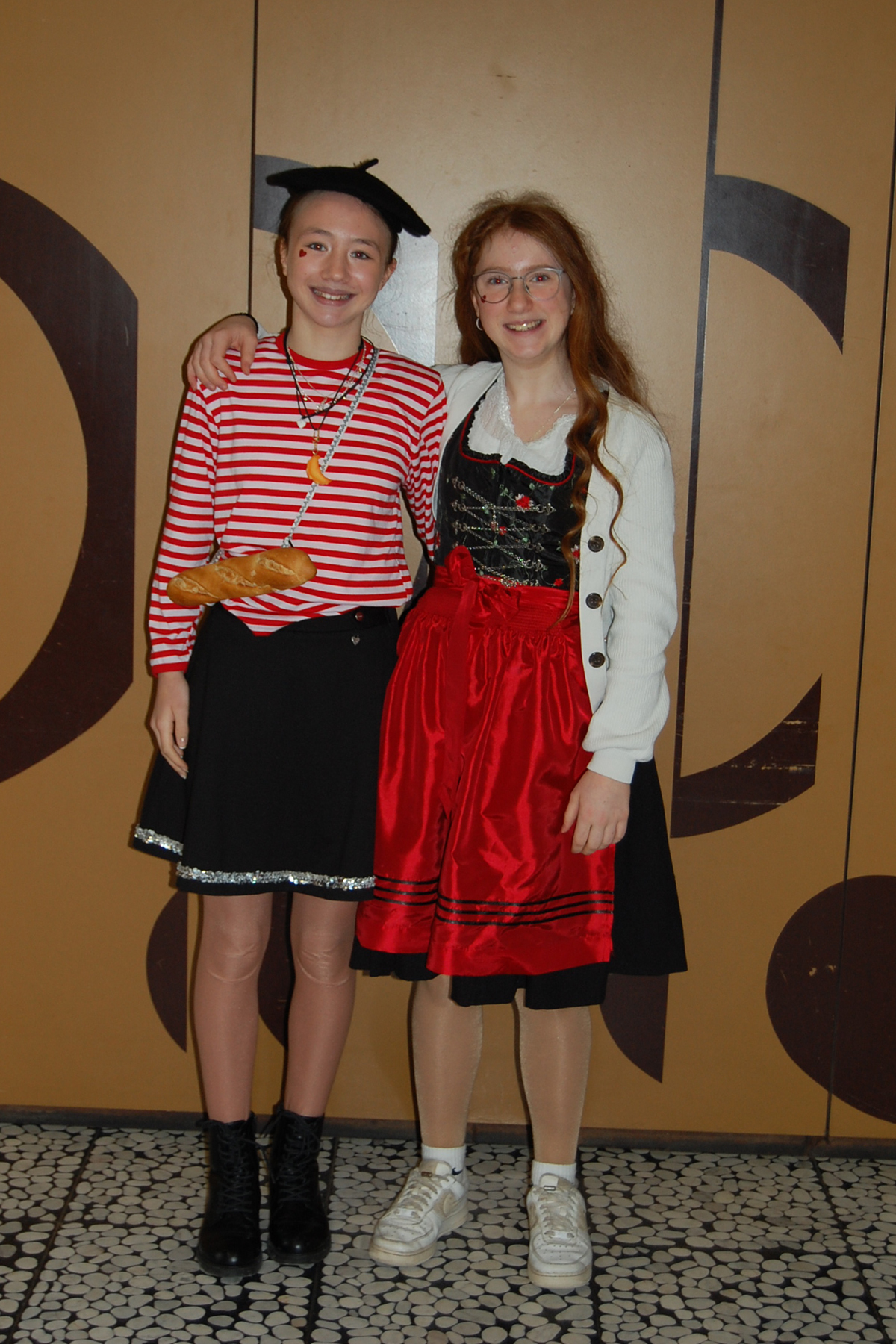 Am zweiten Tag hieß es „Nationalitäten“. Zahlreiche Länder wurden präsentiert und so kamen einige Schülerinnen und Schüler sogar in echter traditioneller Ländertracht zur Schule.